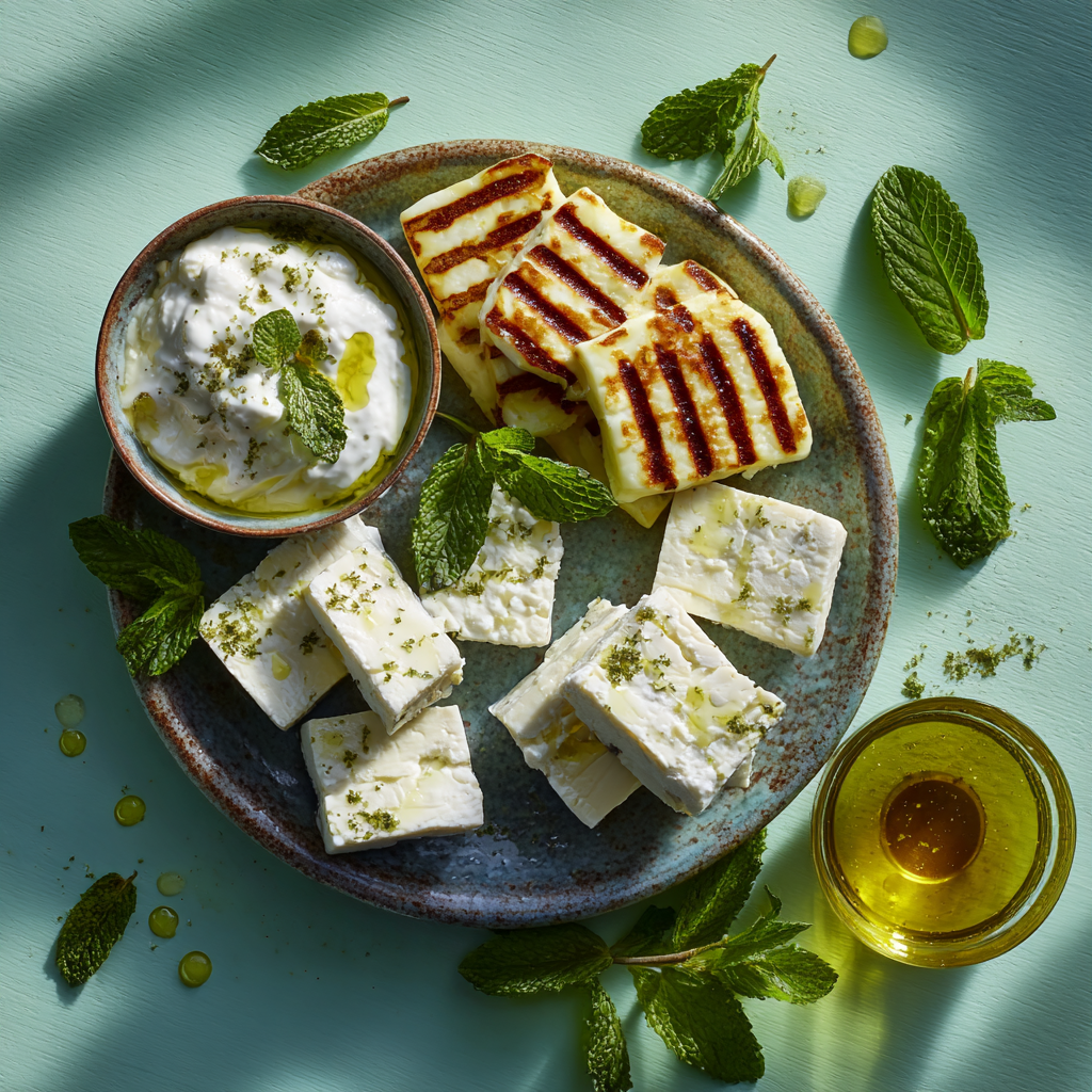 Versatile Greek cheese commonly used in pies, pasta dishes, and sweets.Haloumi and Grill Cheese